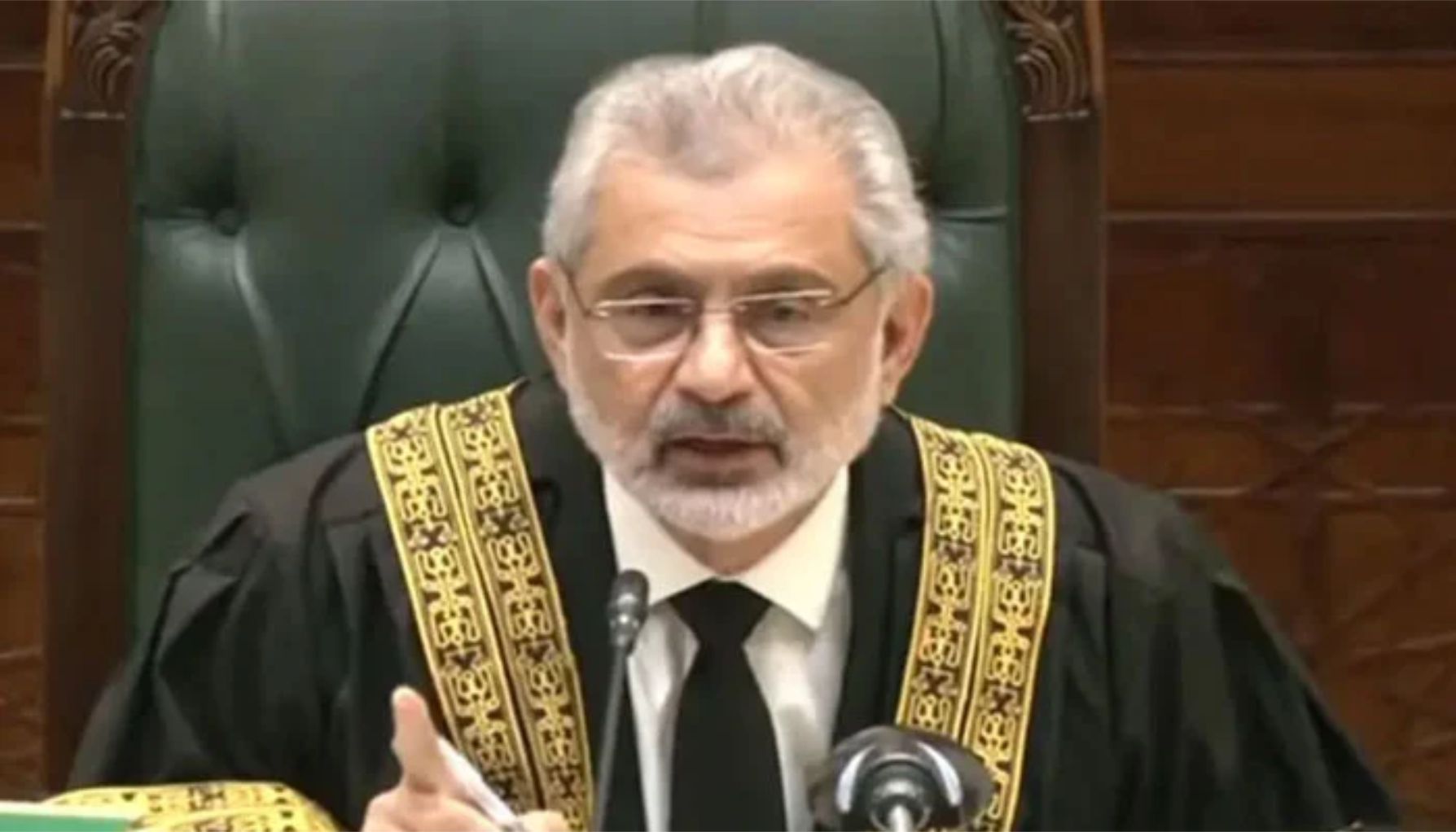 اس پر چیف جسٹس قاضی فائز عیسیٰ نے کہا کہ کھوسہ صاحب یہاں سیاسی تقریر نہ کریں، دکھڑے نہ روئیں یہ کوئی سیاسی فورم نہیں ہے، اگر آپ کو پاکستان کے کسی ادارے پر اعتبار نہیں ہے تو ہم کیا کریں؟